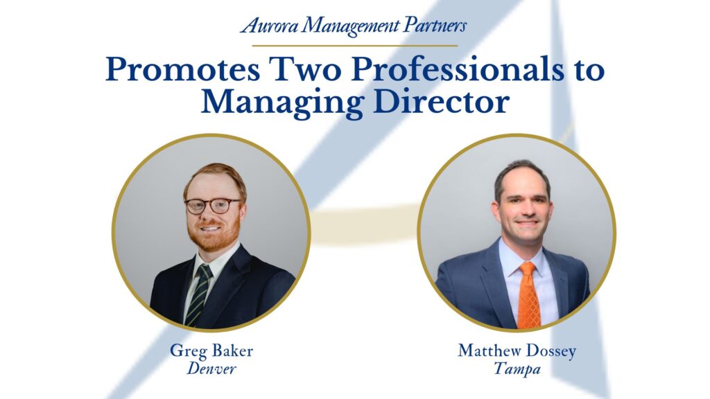 Aurora Management Partners is pleased to announce the promotions of Greg Baker, based in Denver, Colorado, and Matt Dossey, based in Tampa, Florida, to Managing Directors.